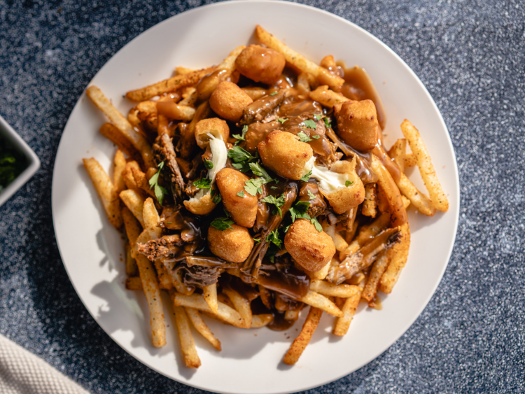 Assemble the Dish: On a large serving platter or individual plates, layer the seasoned fries. Top with warm shredded brisket, then ladle hot brown gravy over the top. Add the cooked cheese curds and garnish with freshly chopped parsley. Serve immediately.